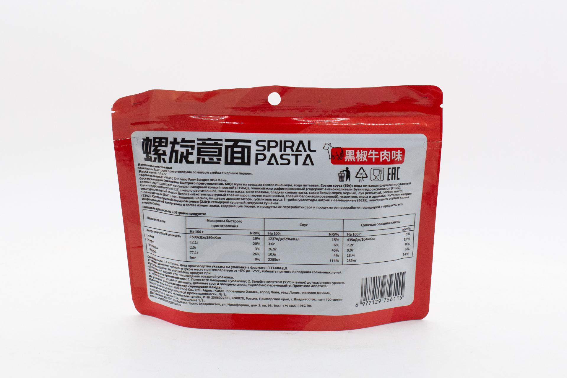 Макароны б/п Ванджэ Фэн Фань со вкусом стейка с черным перцем (Китай) 112,5г0,00 руб. за штуку (в упак. 50 шт.) |